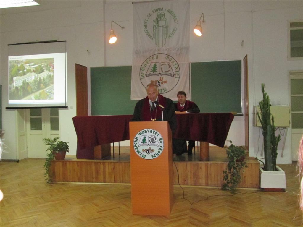 | Проф. д-р Велковски се осврна на децениската традиција во спроведување на програмите на прв циклус студии по европскиот кредит трансфер систем (EКТС), како и многуте договори потпишани на меѓууниверзитетско и меѓуфакултетско ниво, што им овозможува на студентите широка мобилност на бројни сродни високообразовни институции ширум Европа и пошироко. Понатаму, шумско-опитните објекти, паркови, колекции, расадници и теренската настава за време на студиите ќе им пружат на студентите, покрај теоретската основа, да се стекнат со вистинска практична работа.